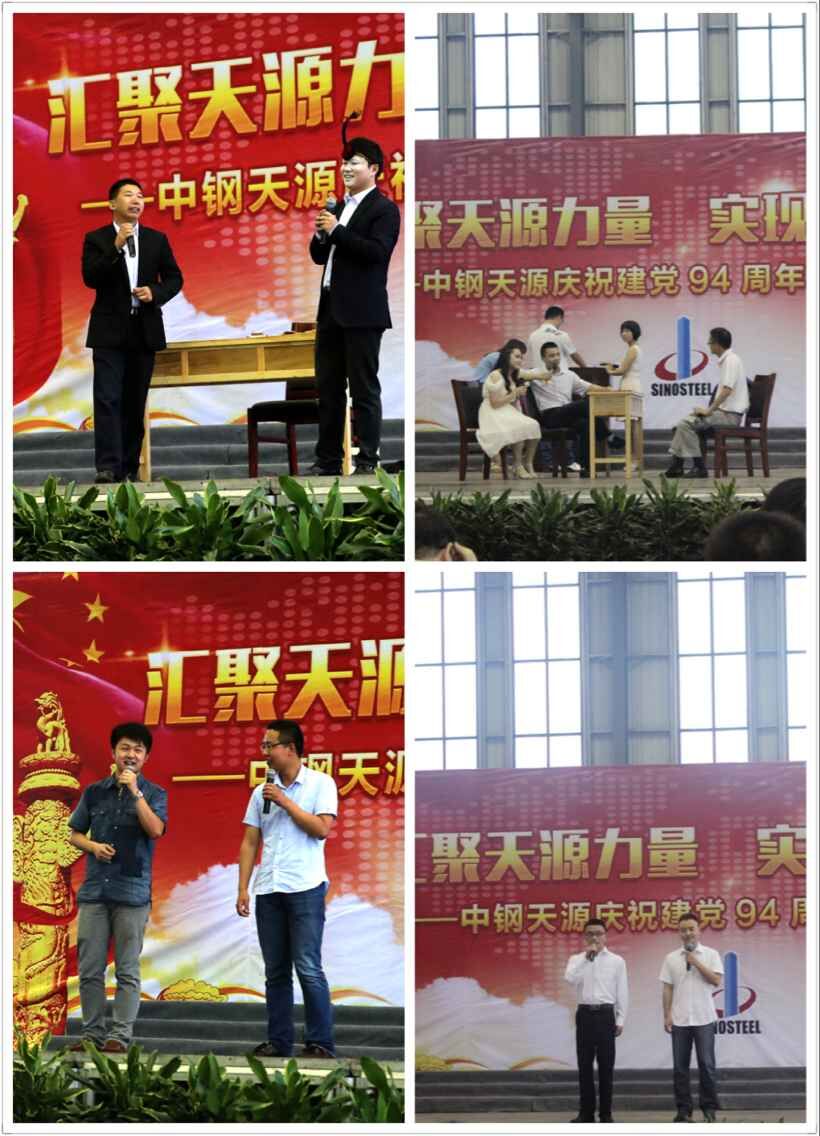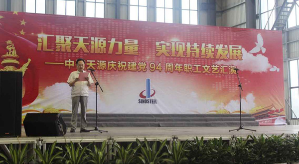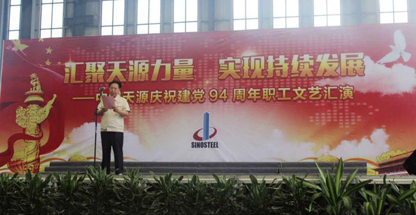 為慶祝建黨94周年,充分展現(xiàn)公司成立以來的輝煌成就、廣大干部員工干事創(chuàng)業(yè)的精神風貌,弘揚正能量,6月27日上午,由中鋼天源黨委主辦,黨群工作部、工會、團委協(xié)辦的“匯聚天源力量、實現(xiàn)持續(xù)發(fā)展——中鋼天源慶祝建黨94周年職工文藝匯演”在公司新區(qū)隆重舉行。公司領導班子及高管,各單位、各部門助理以上中層干部,退休老同志代表,在公司的人大代表、政協(xié)委員,公司第二屆職代會、工代會代表,公司成立以來在各條戰(zhàn)線上獲得榮譽表彰的先進模范人物代表共200余人觀看了演出。